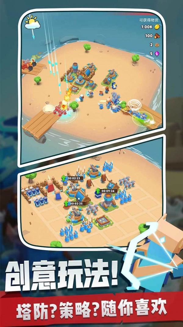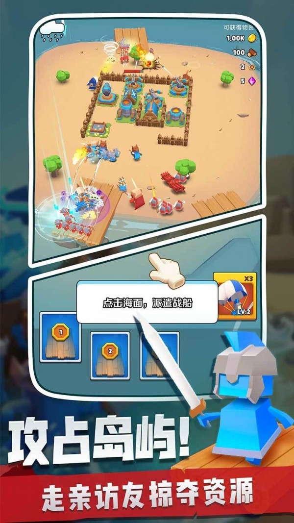 1、动手合并士兵,消除解放土地,拥有新的高级房屋。