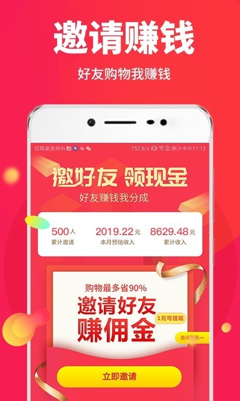 邀请好友享受高额佣金,好友购物我赚钱,邀请越多赚得越多
