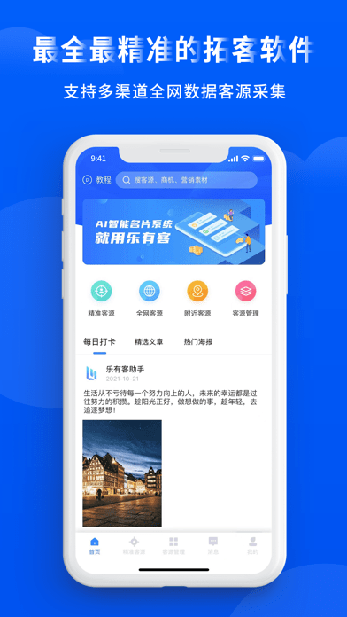 乐有客是一款很优质的办公服务软件,软件功能强大,在这里更好的进行办公服务,随时可以在线进行科员管理,海量的客源提供给你,用户可以放心的在线进行查看,非常强大的店铺管理服务软件,在这里更好的找到优质的客源,是非常实用的手机软件,更好的经营自己的店铺,感兴趣的用户可以下载体验。