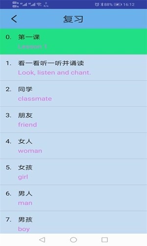 单词卡片:课本配套单词的朗读,翻译,音标,彩图全都有,让学生图形并茂学单词。
