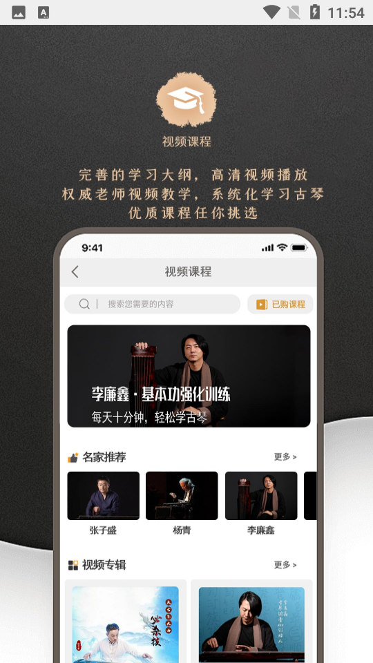 【经典跟练】邀请琴家制作经典曲目演奏示范专辑或单曲,制作经曲跟练曲目,减字谱与录音同步显示,便于琴友对曲子节奏的掌握