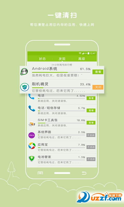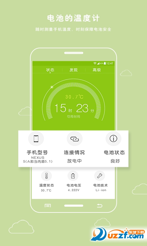 监测电池损耗、电池状态,清晰了解耗电快的原因,换电池手机如换手机,减少开销,避免换机麻烦