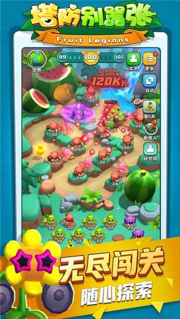 3.同关获得更多奖励,无限金币可以帮你解锁花店里的鲜花并升级你的花果部队,增强战斗力