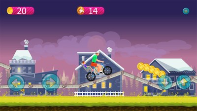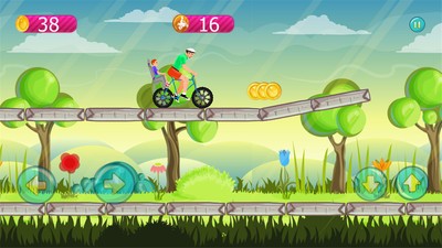 自行车行驶的过程中会碰到形形色色的障碍物,玩家让角色小心驾驶自行车避开这些危险障碍物,然后继续跑酷前行。