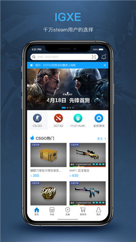 IGXE饰品交易平台手机版是一款主打csgo、dota2以及绝地求生等游戏饰品交易的手机购物平台。在IGXE饰品交易平台手机版上,你可以交易所有游戏内容饰品道具,获取自己心仪的皮肤或者饰品。