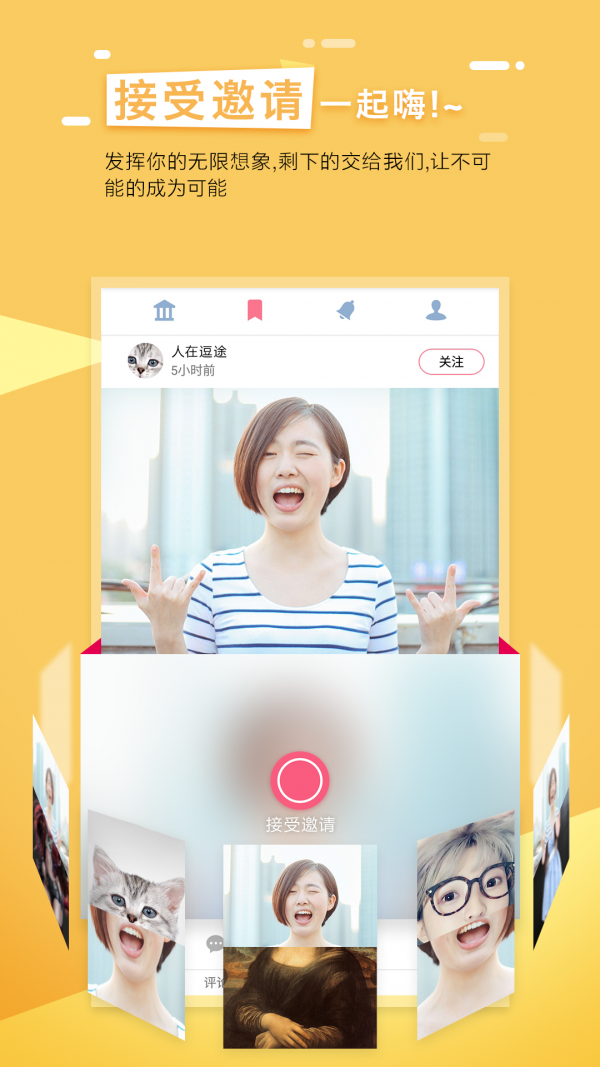 【邀请拍】发出邀请,与好友一起无时空限制互动拍摄,具有其乐无穷的社交拍摄趣味。