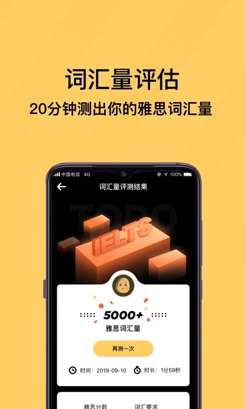 采用了非常科学的单词测量方式,您只需要二十分钟就能知道自己的单词掌握量了;