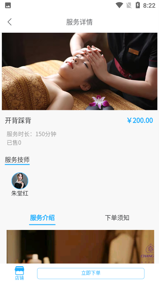 1、上门服务:可根据自己的身体情况,选择适合的按摩项目,查看项目介绍,可以按销量排序,按评价排序,按好评排序筛选服务商。