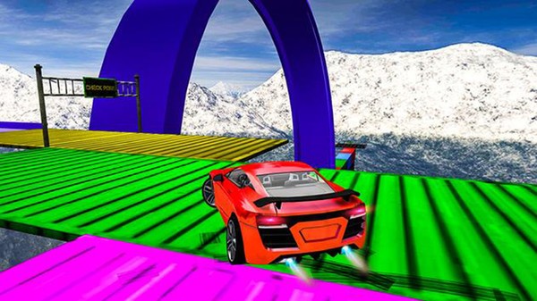 1.巨型汽车特技赛车是具有挑战性的赛车特技游戏。3D高清游戏图形,