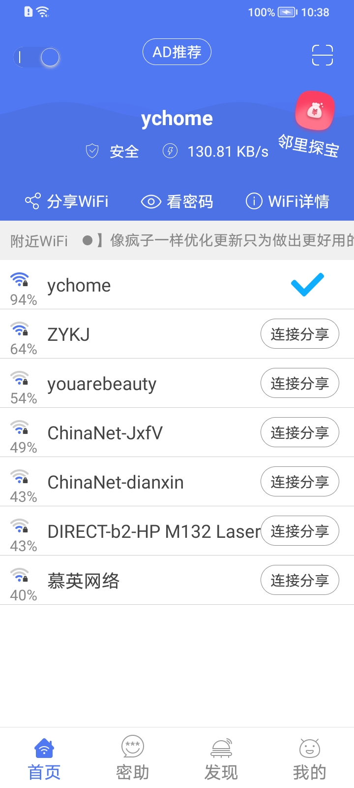 邻里WiFi最新版还可进行wifi密码查看,查看连过的wifi密码;