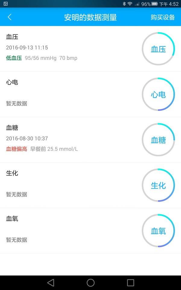 【健康监测】对接智能血压计、智能血糖仪、智能血氧仪,实现血氧血压血氧的居家自我监测;