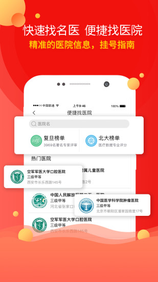 3.找医院权威的全国三甲医院信息库,提供医院信息查询、就诊(挂号)指南、医院点评服务。科对医院的医疗技术、医院环境、服务态度进行点评。
