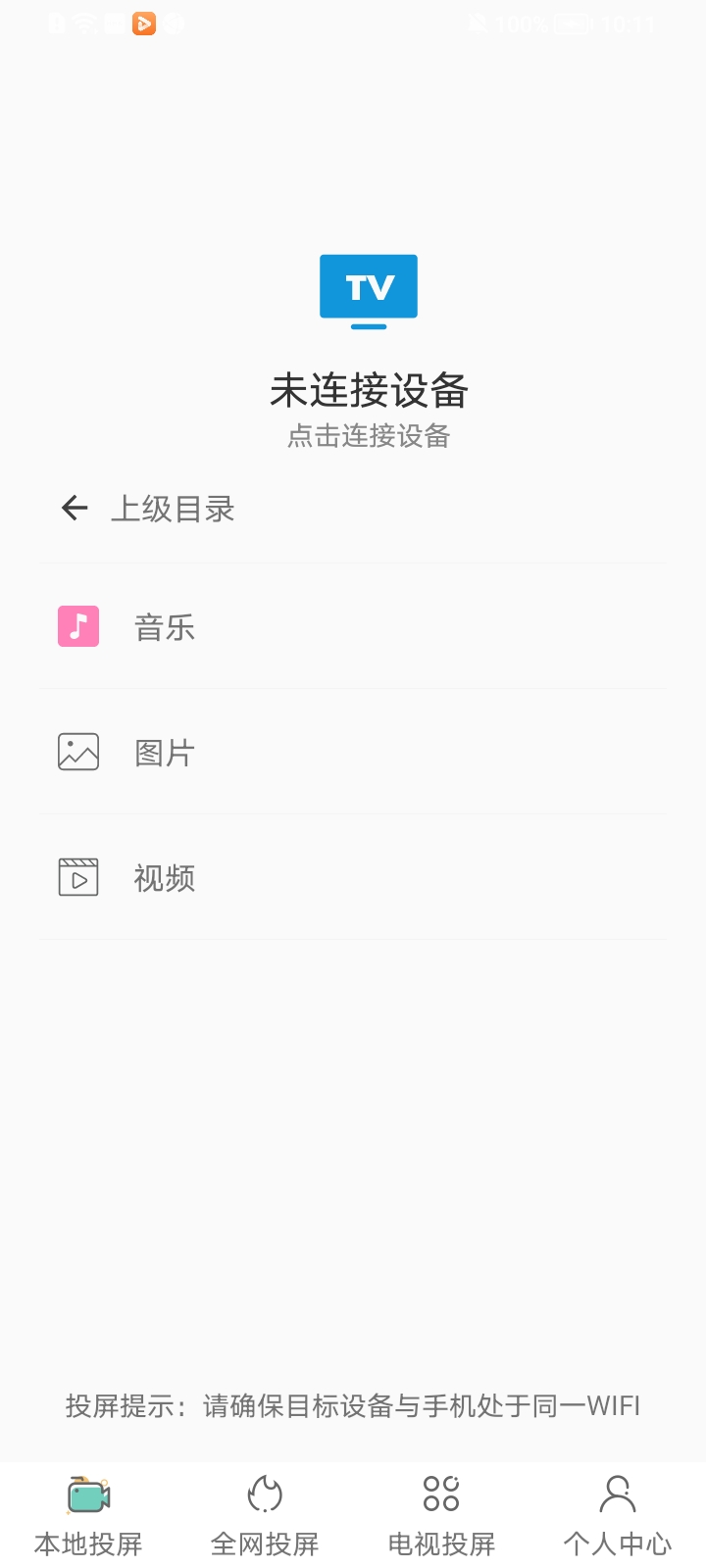 支持本地视频、照片、音乐均一键投屏到电视,畅享大屏体验