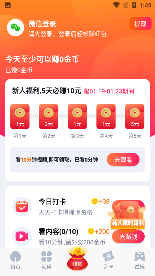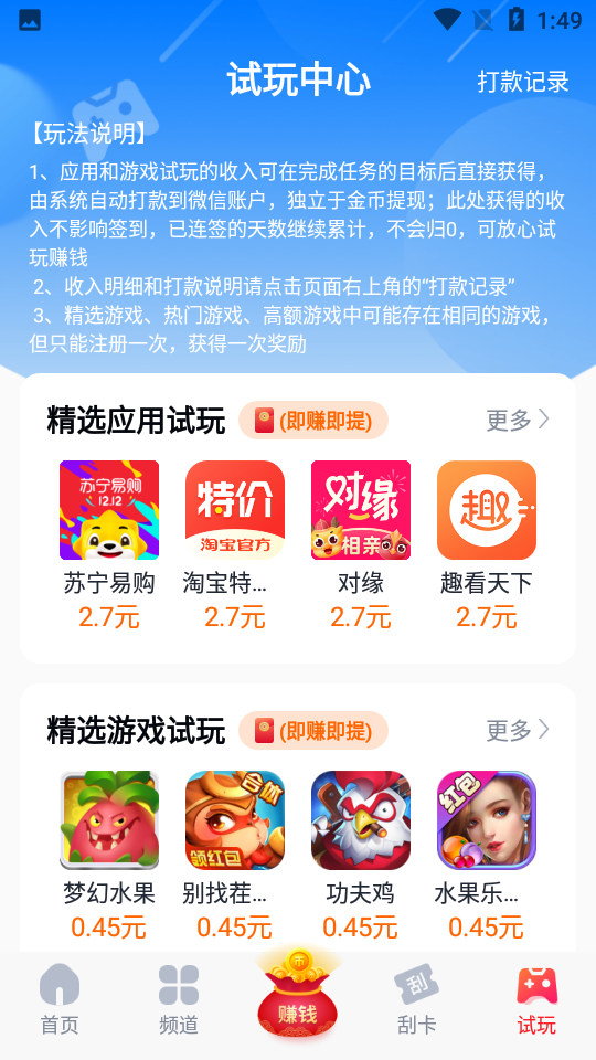 1、应用和游戏试玩的收入可在完成任务的目标后直接获得,由系统自动打款到微信账户,独立于金币提现;此处获得的收入不影响签到,已连签的天数继续累计,不会归0,可放心试玩赚钱