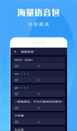 海量真人语音包,给你在游戏聊天中增加更多乐趣,吃热门游戏,日常聊天、清唱合集,总有一款语音包适合你