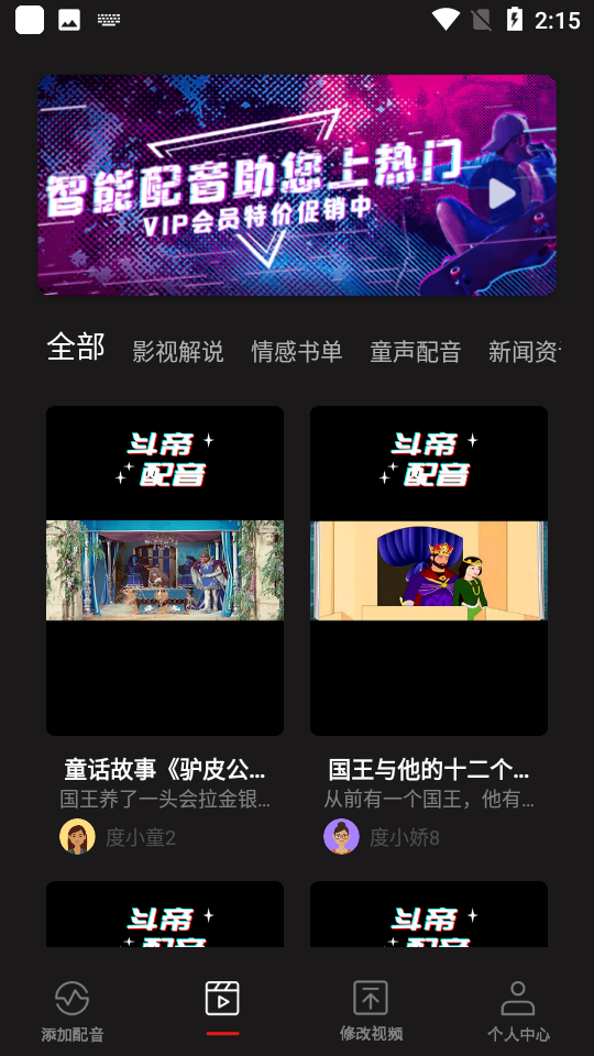 1.在这个软件中,有海量超多的配音工具可以让用户在软件中选择使用,让用户随意的选择使用,还有各种的精选主题内容全新上线,非常实用。