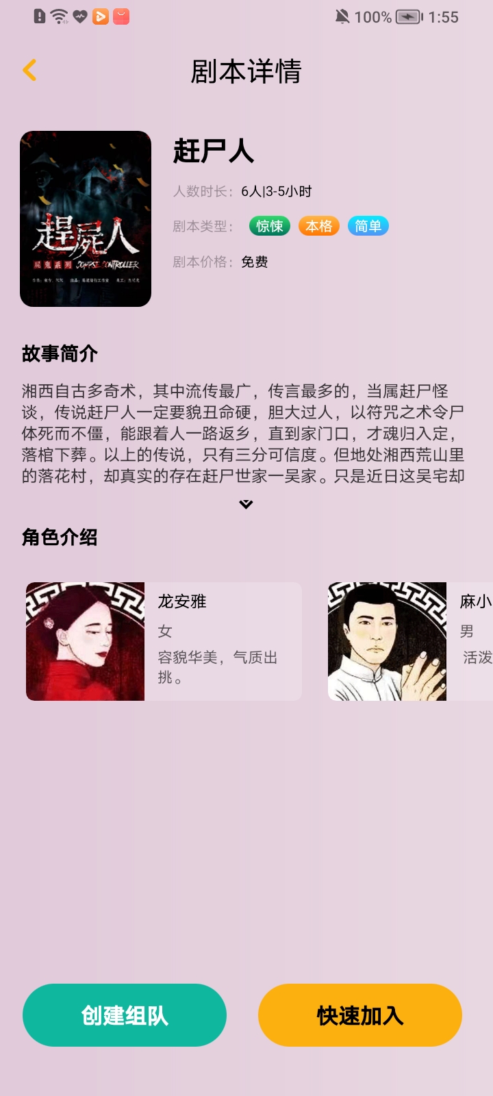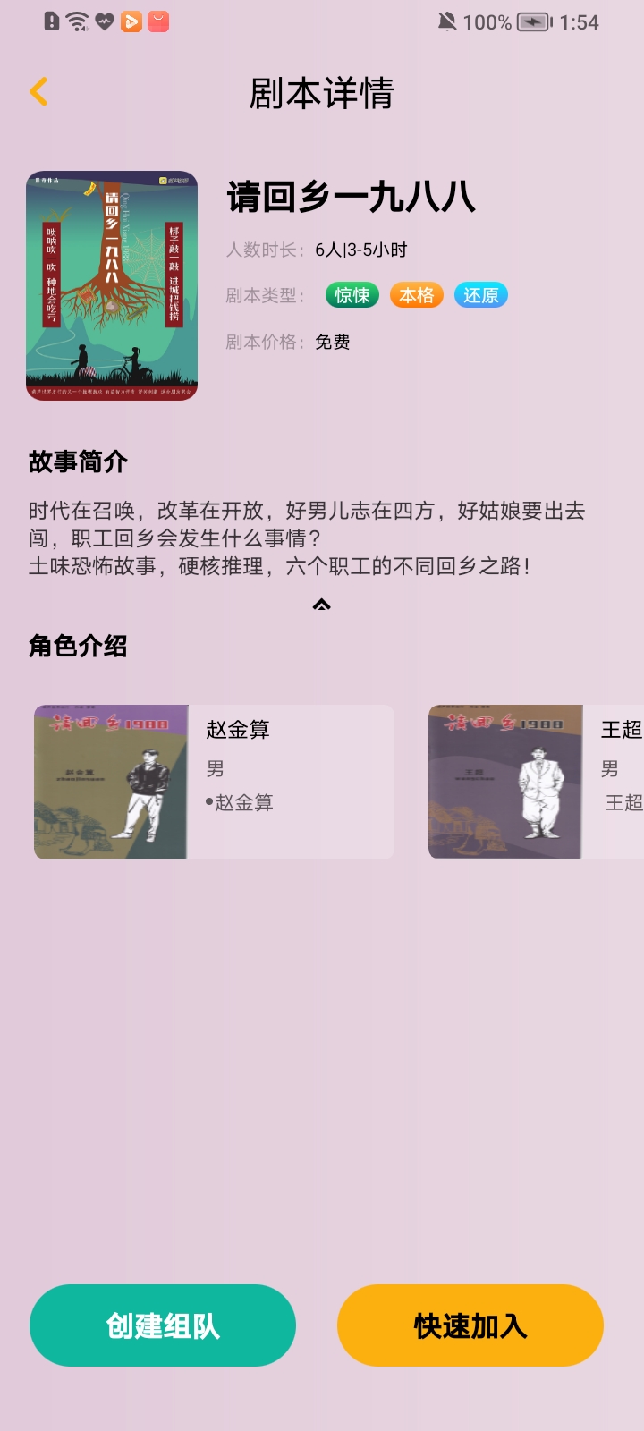 3.决定了剧本后在剧本详情页面下方点击【创建组队】