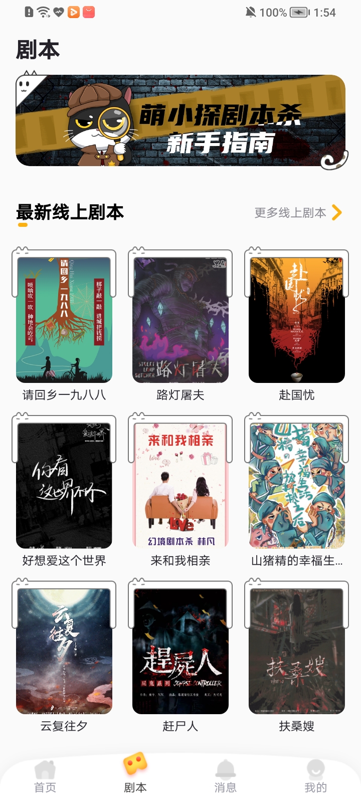 海量剧本库,囊括多种线下剧本玩法,阵营、情感、恐怖、推凶、欢乐等多种剧本模式,剧本题材更是包罗万象:都市、古风、仙侠、宫廷、日式、未来、恐怖等,总有一款您喜爱的剧本。