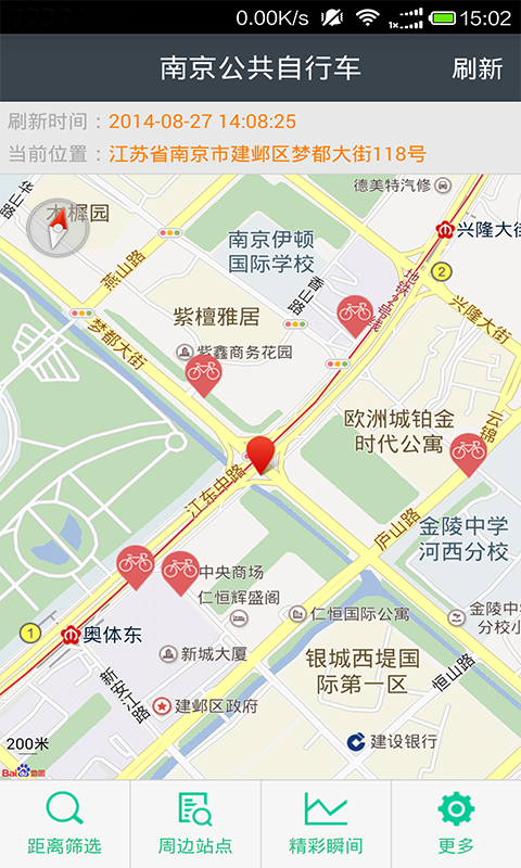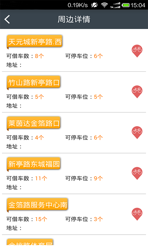 另外,骑车宝APP还有站点查询功能,可以方便查询周边自行车站点相关数据。