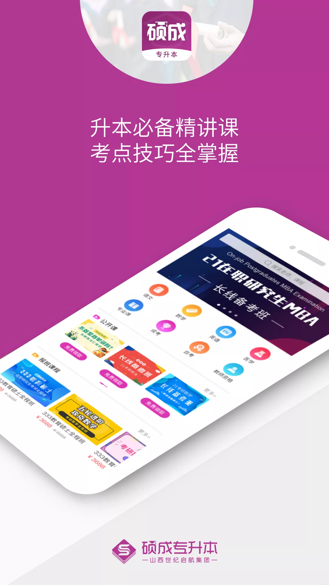 海量视频库的一个课程学习平台,硕成在线app是一个专升本的平台,这里有必备的精讲课,考点技巧全掌握,支持离线看视频,还有热点资讯,想看就看就学就学,超级方便。职业教育培训等,是一家综合性培训机构。我们拥有强大的启航师资力量与教学资源和先进的研发团队,为广大用户提供互动化,个性化,智能化的在线体验。