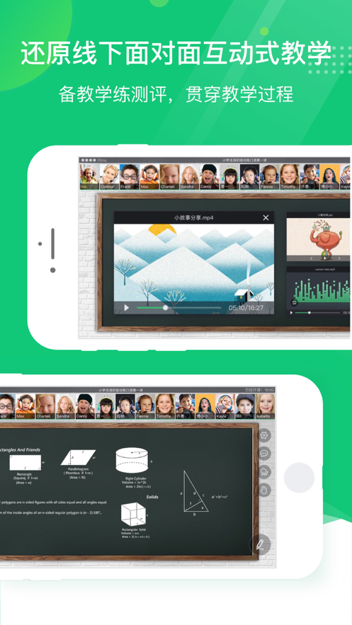 【多种类教学课件】支持多互动式教学课件,包括带动画特效PPT、视频、音频、Word和PDF等,同时允许多个课件组合式教学,满足更多的教学场景。