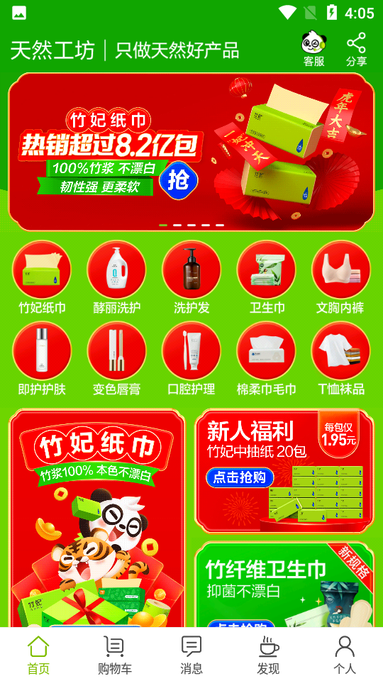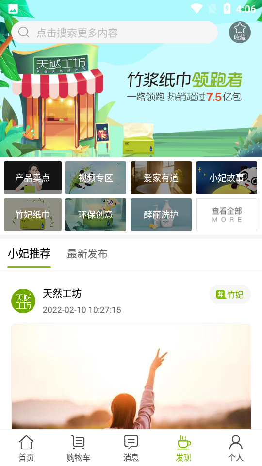 天然工坊app,让你为保护环境,保护森林贡献自己的一份力量,天然工坊竹妃竹纤维纸,环保实用,给你的家庭生活、健康保障。坚持“天然、健康、环保、实惠”的产品理念,致力于打造一家“只做天然好产品”的绿色环保型企业。5年多以来,会员突破3200万。传播环保理念,共创美好生活,希望把健康环保的生活方式带给千家万户。