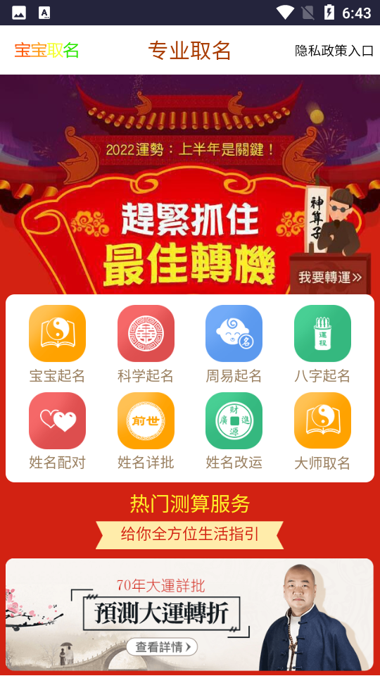 下载“宝宝起名”,您的专业起名解名改名测名大师,护您宝宝一生顺遂!