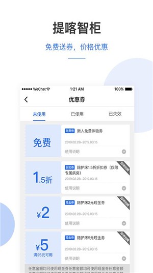 3、在线使用智能柜时还可以领取优惠券,优惠券可以抵扣消费