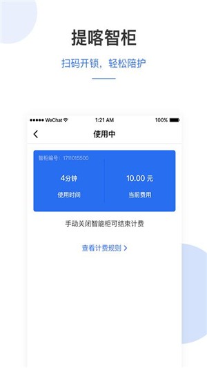 轻轻手动关闭智能柜即可结束计费,随时查看计费规则;