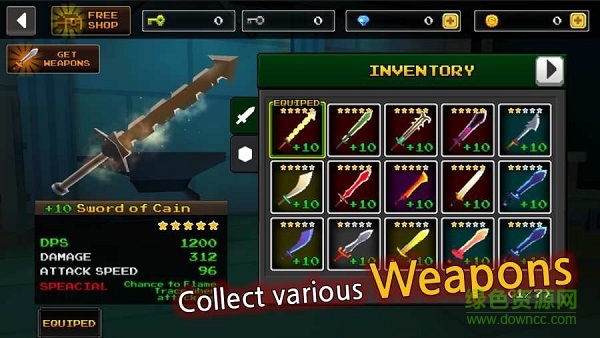 游戏的操作上与传统的rpg游戏并无二致,但《像素刀剑》的装备系统非常的庞大,任何武器你都可以定制,可以升级。玩家可以通过打造不同的武器来完成关卡,可玩性非常高!