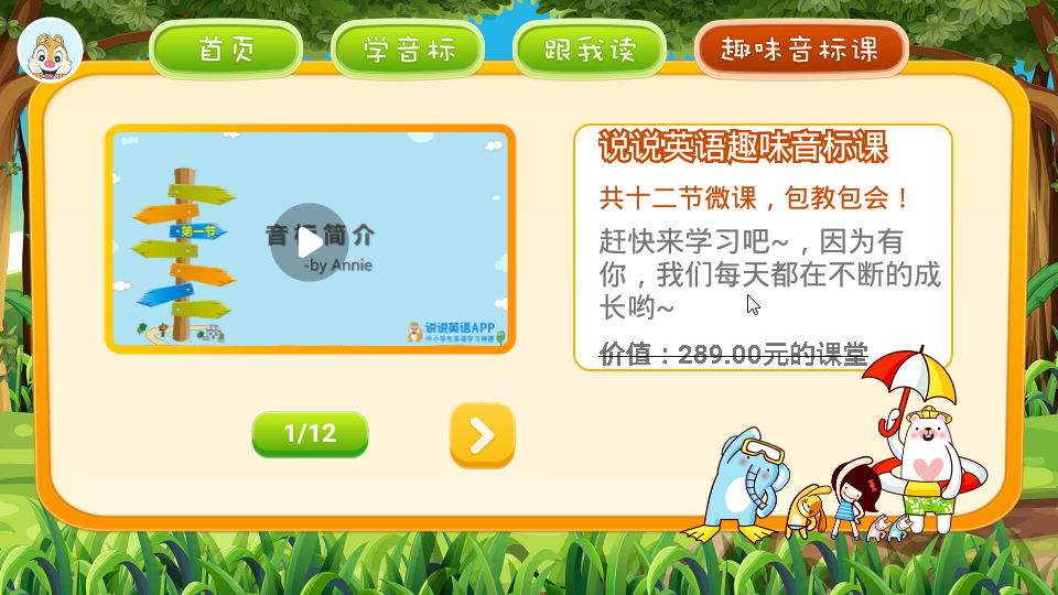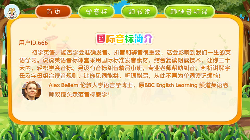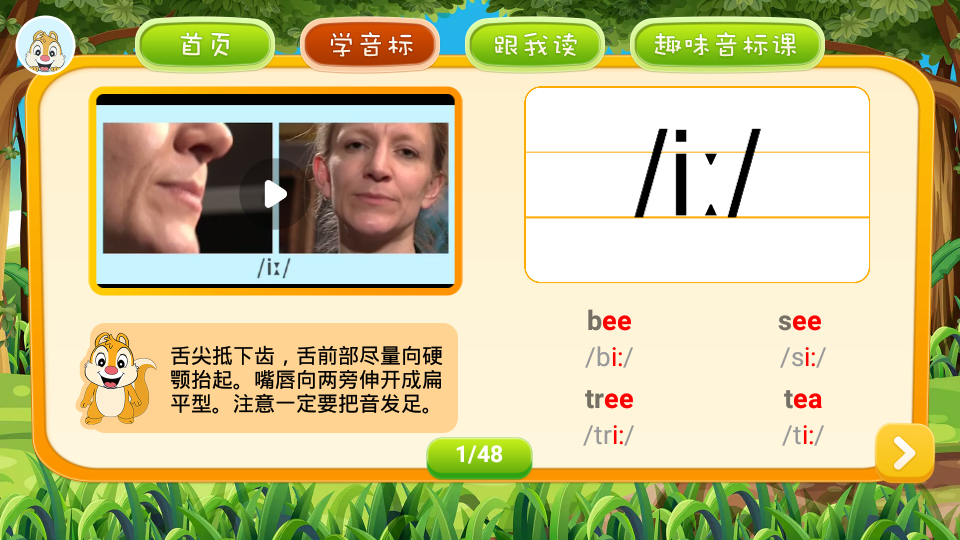 学生能够 点一下app出示的英语音标,随后迅速的把握大量英语音标的发音标准;