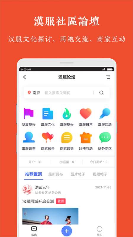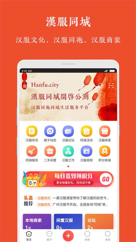 汉服同城APP是一款集汉服文化研究、同城汉服商家服务、同城汉服活动、同城汉服同袍社交娱乐于一体的综合性平台,这里有大量的汉服文化、服饰、美物等让大家观看了解,也有超多的汉服达人入驻在此分享传播汉服文化,大家可以在这里了解汉服文化,结交更多汉服爱好者,一起分享交流,传承传统文化,在线支持汉服用户交友互动以及汉服的线上网购,多种功能服务带给大家便捷使用,自己可以发布各种汉服的话题动态,传承中国汉服文化信息,满足不同用户的互动需求,随时随地在线进行使用,对汉服文化非常感兴趣的朋友推荐下载使用。