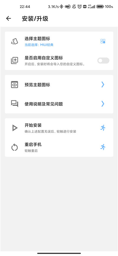 3、各位用户还可以选择主题图标以及设置是否启动自定义图标等选项。