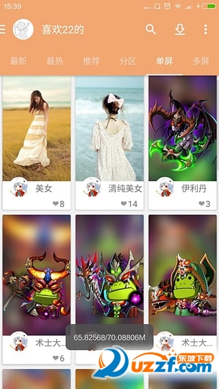 这个功能,在里面拥有各种类型的分栏板块。无论你是简约控、文字控、动漫控还是喜欢各种美女、各种宠物、各种风景,在这里都可以找到你的“款”;