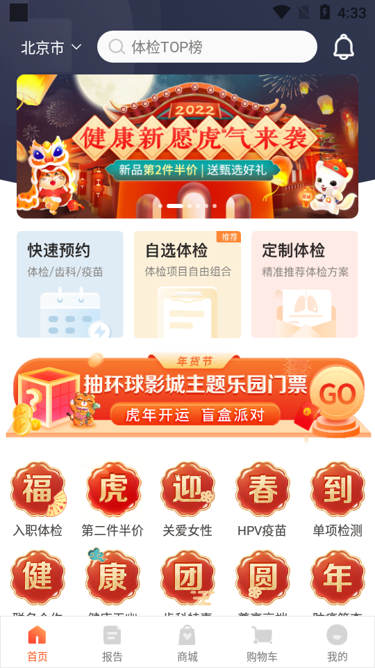 1. 购买体检:提供多种多样的体检套餐、齿科、疫苗服务供用户购买及预约。