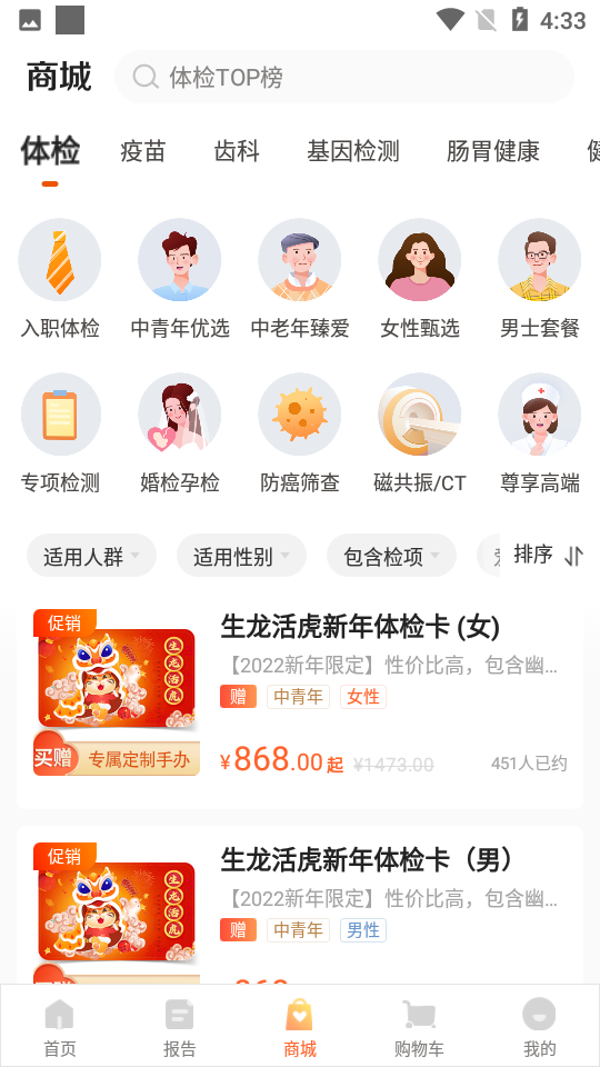 -套餐项目一目了然。 -无需注册即可在线购买所需体检套餐。