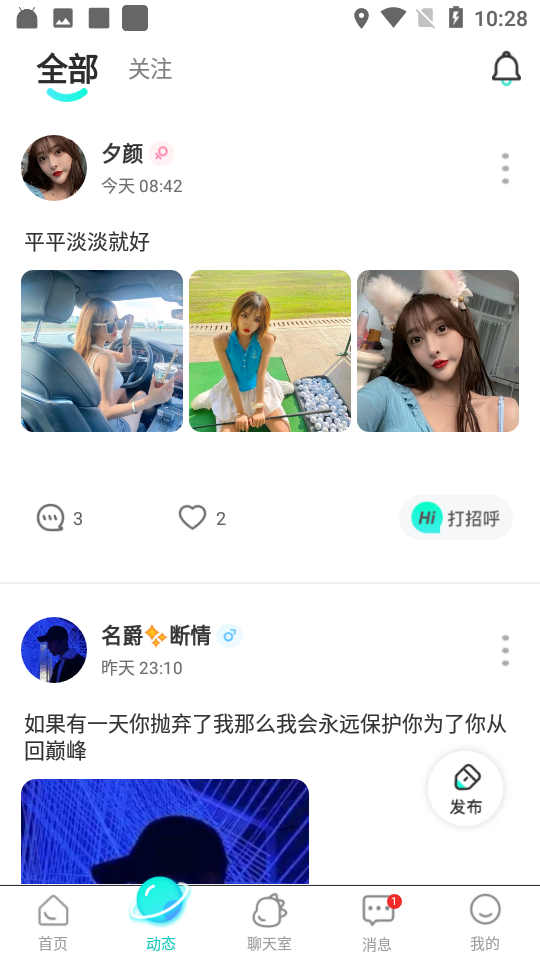 发布图文、声音动态,在你的地盘尽情释放魅力,展示自己,享受无压力社交的同时带给你暖心的陪伴。