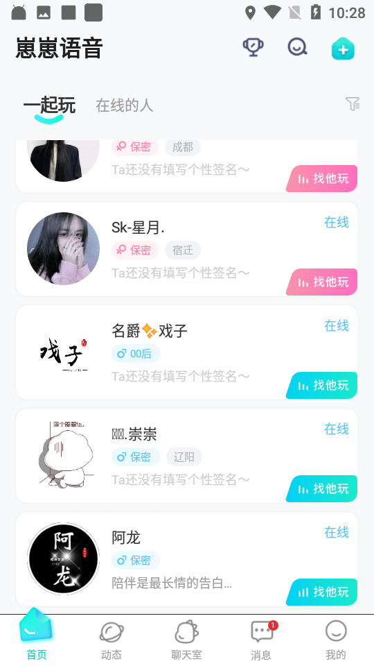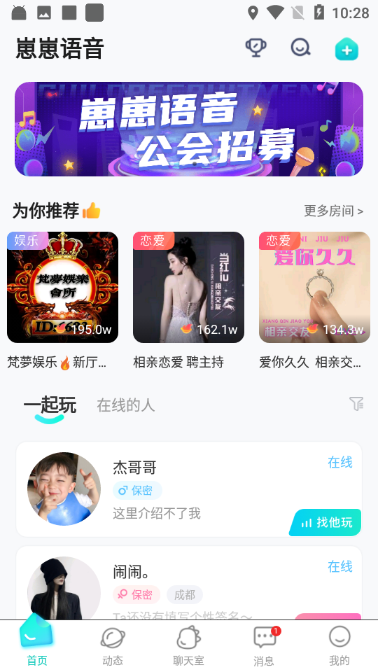 相约崽崽,毫无社交压力的语音恋爱社区。