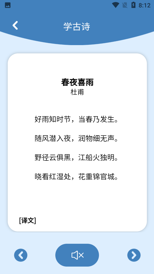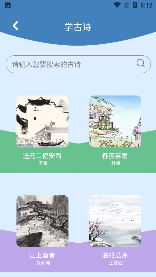 2、古诗学习:收录了多首诗词和典籍,让你轻松达到熟读古诗词。全面注解、释义和赏析、帮助宝宝深度理解诗词。