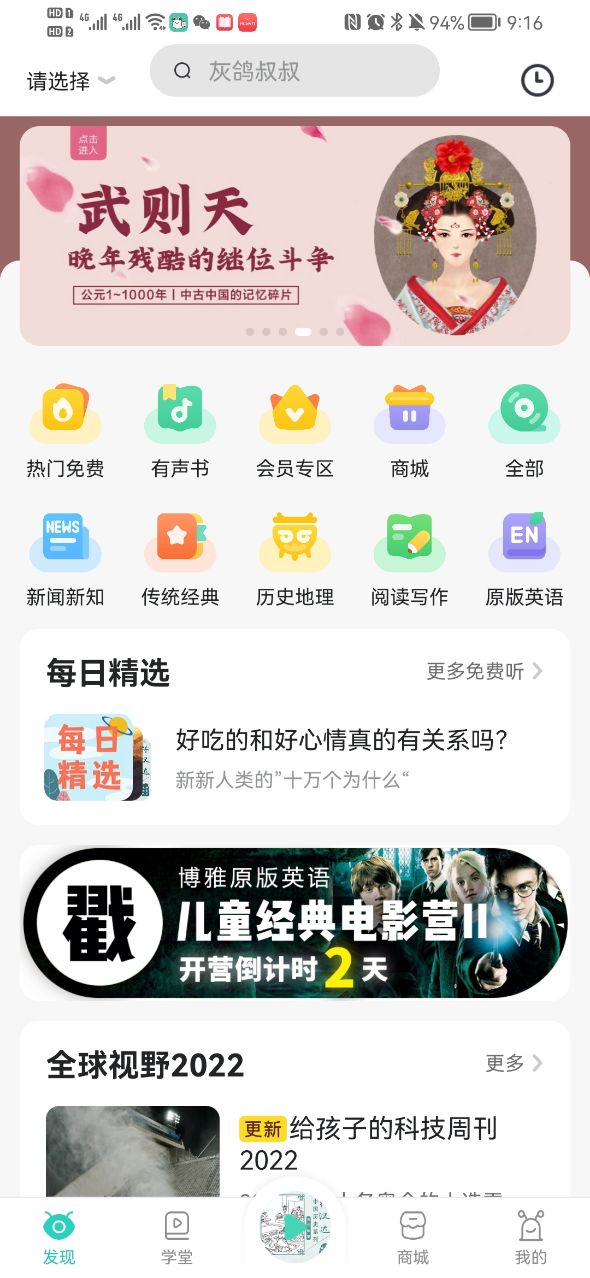内容涵盖儿童文学、儿童历史、科学,地理,英语,新闻等。