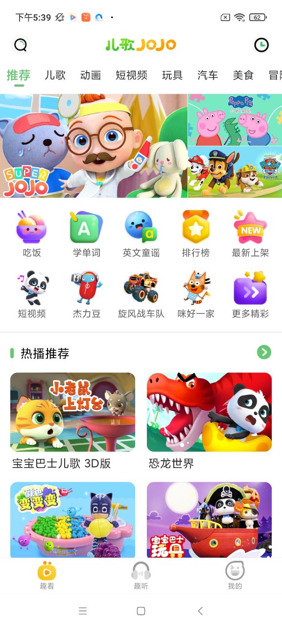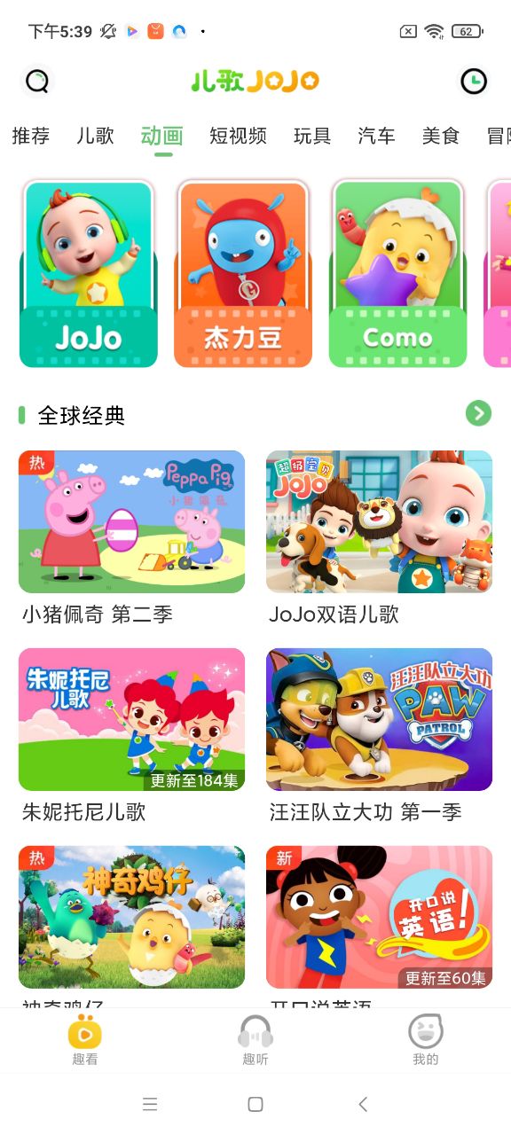 1.精选热门IP超级宝贝JOJO:儿童双语启蒙儿歌动画,以0-6岁宝宝喜爱的JOJO宝贝为主角,让JOJO带领宝宝学英语和中文,探索科学,共同成长;