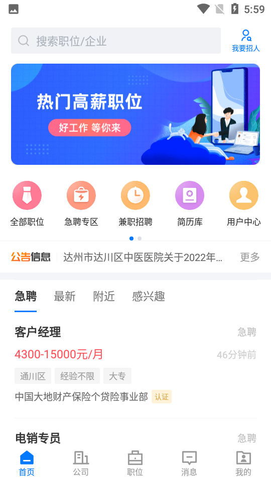 专注达州本地平台,根据你的位置信息为你推荐附近优质的岗位信息,找到附近适合的岗位;