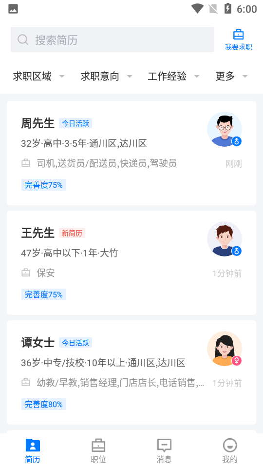 平台每天都会更新大量的求职招聘信息,各种类型的求职招聘信息这里都有,满足用户求职的需求;