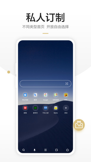 2.自由开放:支持自定义主页布局、自定义搜索引擎、自定义操作栏、自定义UA等…全面养成属于自己浏览习惯;