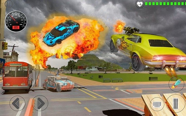 1、驾驶汽车狂飙的同时还可以点击开火键,需要事先瞄准好对方的车辆。