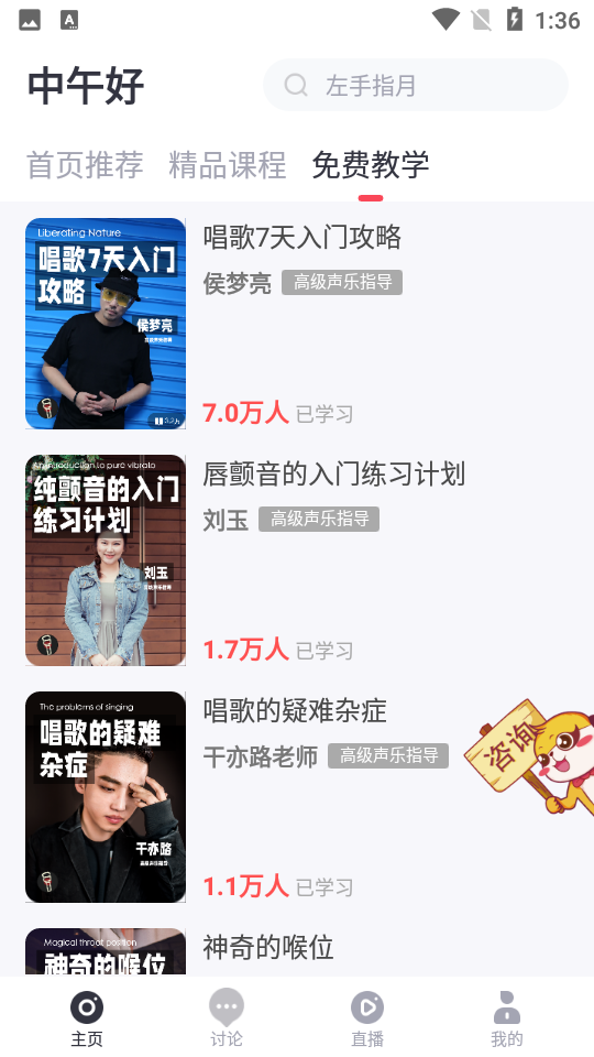 4、提供演唱问答服务专业老师通过语音或是文字给你解答;