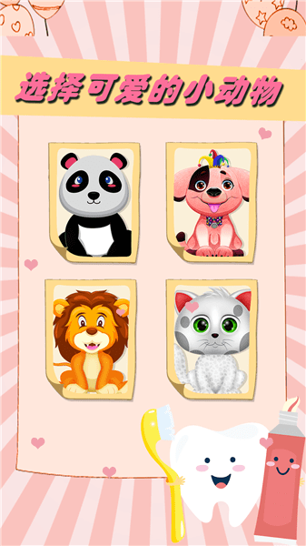 宝宝萌宠医院手游可以让玩家模拟真实医生开始看病,跟随步骤帮助动物进行治疗,体验全新游戏玩法,玩家可以解锁各种动物,玩法简单可以让孩子了解口腔健康,打造全新早教手游。在这里有很多的小动物受伤了,需要宝宝们帮助小宠物处理伤口,检查它们的身体,减轻它们的痛苦。在这个游戏中宝宝们需要扮演宠物医生,帮助小宠物检查身体,处理它们的伤口和修复它们的牙齿。