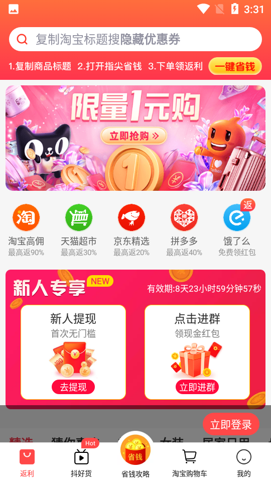 指尖省钱是一款淘宝、京东、拼多多优惠券省钱购物APP!