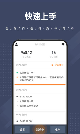 新入驻的司机无需专人指引则可以轻松上手接单,傻瓜式的操作非常简单;