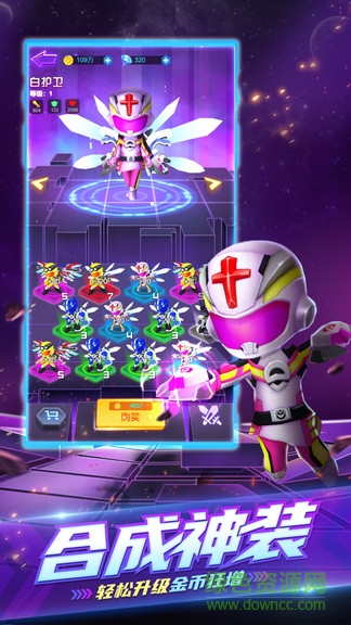 超轻松合成,拖动萌版战击角色,合成全新巨神战击队,多款皮肤、武器、翅膀,让你的角色更华丽、更独特!每个角色拥有不同技能,击碎结晶,增强生命力;找寻相同图案,实现战能强化!